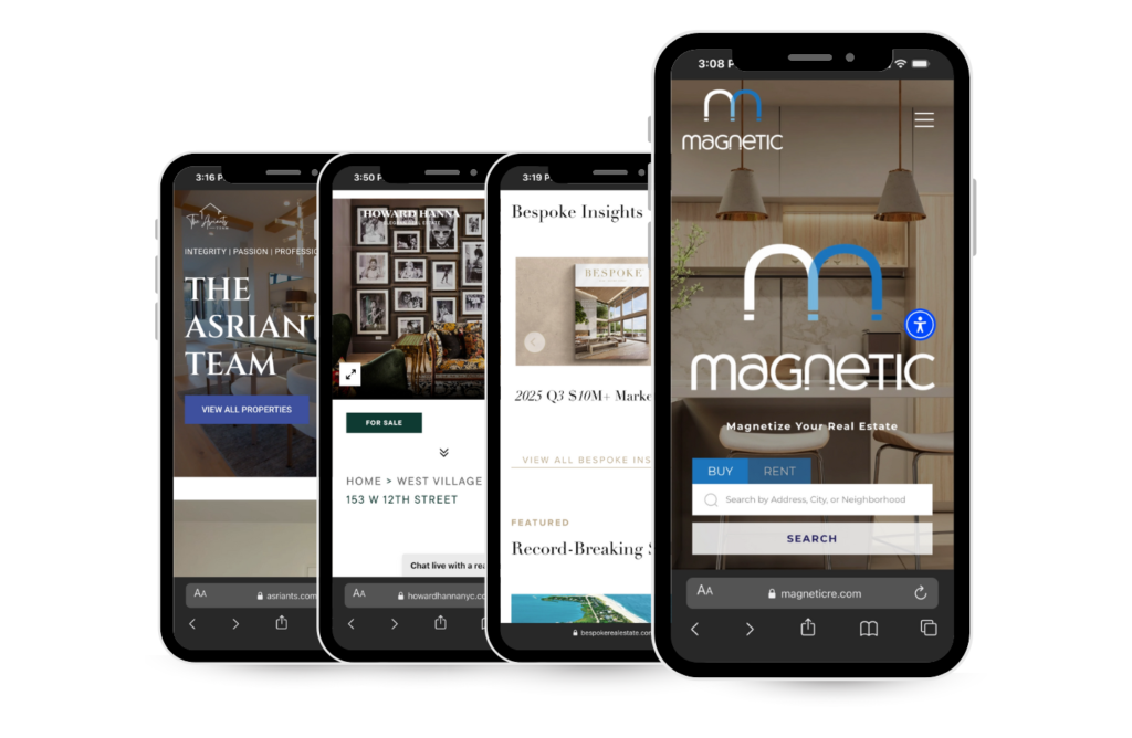 Over 70% of New York real estate searches happen on mobile. We design every site mobile-first, not desktop-first. That means: